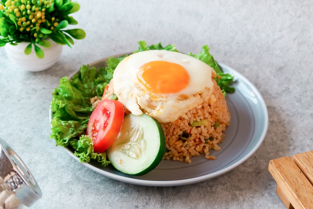 Delight in our Nasi Goreng, a flavorful fried rice dish cooked with a mix of aromatic spices, vegetables, and a choice of protein, creating a savory, satisfying meal.